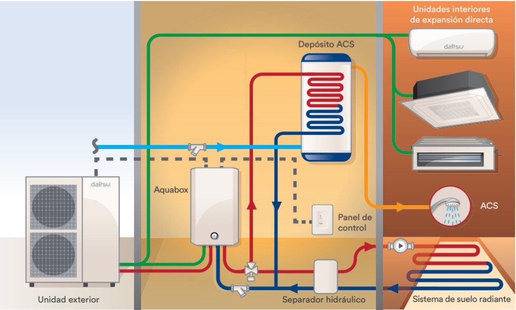 Este sistema nos permite ahorrar notablemente en la factura del gas/gasoil y la factura de la luz. Es el sistema de climatización más eficiente y confortable que existe en la actualidad.
